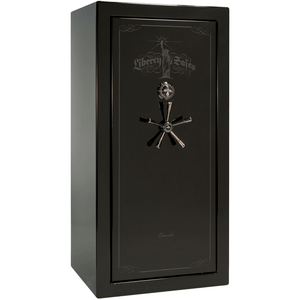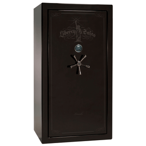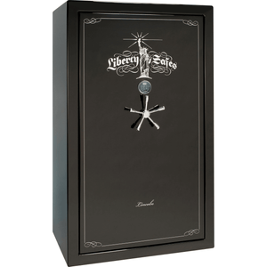 Choose between the UL-listed Sargent and Greenleaf mechanical dial or opt for Liberty's UL-listed SecuRam ProLogic electronic lock, available in chrome, black chrome, and brass finishes. Enjoy added convenience with Liberty’s deluxe electrical outlet kit, Clearview lighting system, velvet-lined jewelry drawer, and 12” dry rod dehumidifier—all included as standard features.