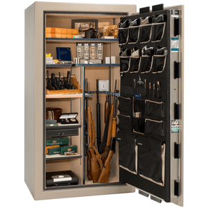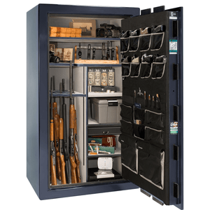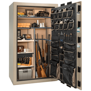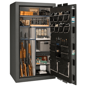 Featuring Liberty's innovative 4-in-1 Flex™ configurable interior, the Lincoln provides storage space for up to 50 long guns alongside shelving for handguns and smaller valuables. This safe exudes sophistication and is loaded with high-end touches, including a factory-installed deluxe door storage panel and a 5-spoke Suretight handle.