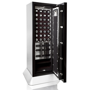 Above all, a safe’s core function is protection, and this is precisely where the Chronos dominates. The Chronos stems from 35 years of experience developing high security safes for military use in high risk locations. Bristling with the newest means of proven defenses, the Chronos watch safe boasts a protection feature set like no other. This includes ballistic armor plating, four way solid titanium locking bolts, tungsten carbide hard plate, locking bolt anti-drive, active and passive relocking, interlocking anti-pry door, hi-density amalgamate cladding, reinforced anchor bolts, alarm system integration, and a GPS alert and tracking system. Visit our store or give to custom order The Chronos to your exact specifications.
