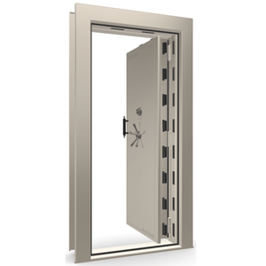 The Vault Door combines style with superior theft and fire protection for an elegant look that fits any decor. Massive 4-inch military style locking bars that are 1/2 inch thick will defend against any pry attacks. 2.5 hour fire rated door and heat-expanding Palusol door seal protects from smoke and heat. Vault Door includes both inside release 3-point handle and inside lock lever to lock door from the inside as a panic room. If your plans include a whole room full of items to protect...Liberty's Vault Door will get the job done.