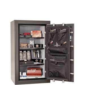 Liberty's imported PREMIUM LX FIRE HOME SAFES are the top selling home safes with higher security and fire protection along with contemporary styling to fit in any home or office environment. Engineered by Liberty, all Premium Home safes are built to Liberty's specifications--including 90 minutes of fire protection, thicker steel body, bigger bolts, UL Listing and other valuable amenities make these safes a great investment. SecuRam's UL Listed electronic lock allows for easy and quick access. These home security safes have a 180° door opening, making access to valuables easy.